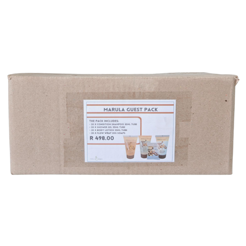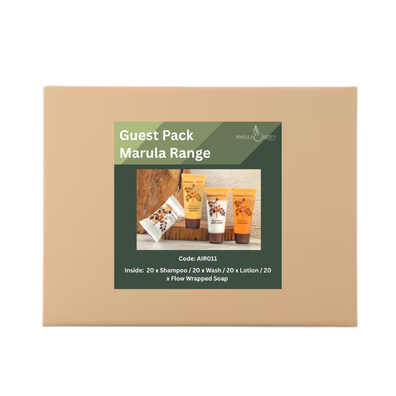 Enhance your guests' stay with the Marula Range Guest Pack. Inspired by nature, this collection features a refreshing Marula Tree fragrance and provides a complete set of quality amenities for a truly luxurious and pampering experience.