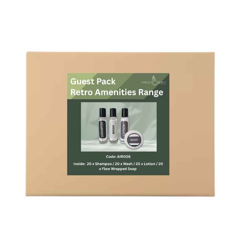 Enhance your guests' stay with the Retro Range Guest Pack. This collection features a luxurious range of guest amenities featuring the beautiful and serene Sea Breeze fragrance, nourishing amenities for a truly luxurious and pampering experience.