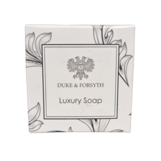 Enhance your guests' stay with our Duke & Forsyth Range 25g Boxed Soap. This classic bar offers a refreshing cleanse and comes in a decorative box, providing a consistently clean and elegant experience for every arrival.
