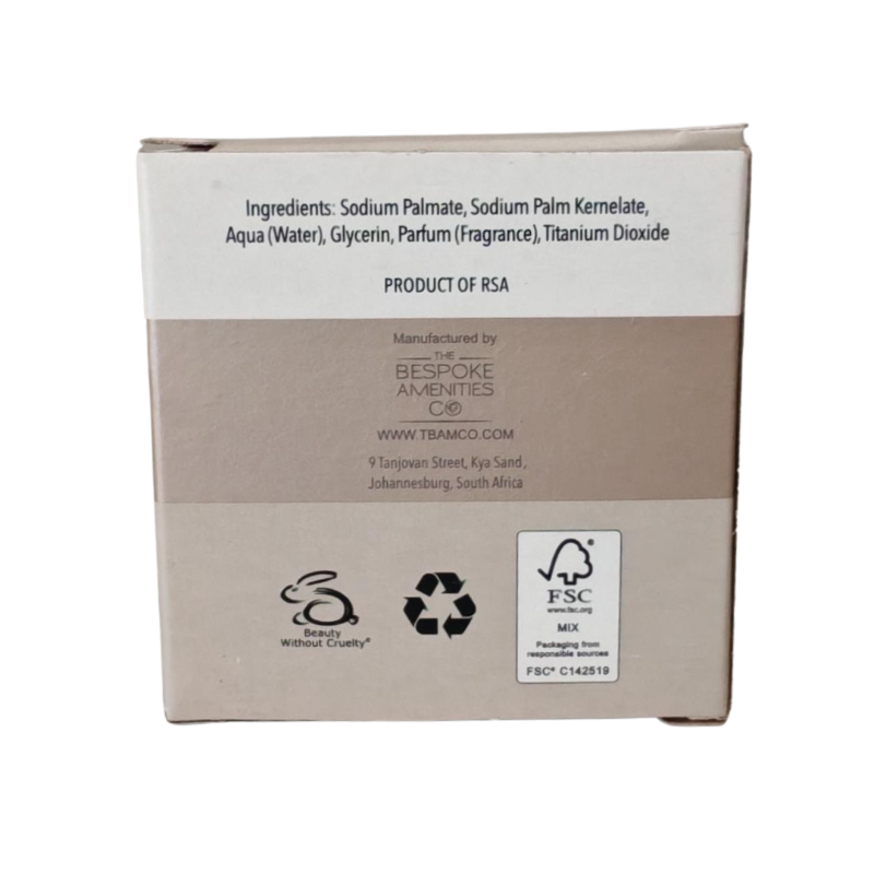 Enhance your guests' stay with the Terra Firma Lux 25g Triple Milled Guest Soap. This gentle soap offers a luxurious lather and a refreshing scent of sandalwood and orange. Presented in eco-friendly, plastic-free packaging, it reflects a commitment to both luxury and sustainability.