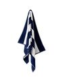 Made from 400 GSM cotton, this yarn-dyed striped towel in navy features a luxurious velour on one side and a terry towelling reverse.