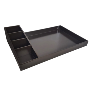 Superwood beverage tray to hold kettle, cups and beverage condiments.