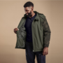 - detachable hood with adjustable toggles and plush fleece